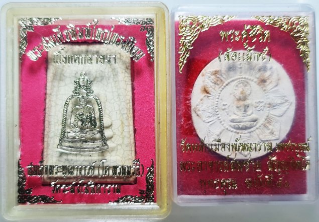 << วัดใจ >> พระสมเด็จวัดระฆัง แตกลายงา รุ่นM16 ปี46 พิมพ์ใหญ่ทรงนิยม เกศทะลุซุ้ม + พระคู่ชีวิต (ล้างอาถรรพ์) พิมพ์ล้อแม็กซ์ รุ่นเนื้อผงมวลสารชั้นครู วัดหลักเมืองพัฒนาราม จ.เพชรบูรณ์ รวม 2 องค์ |