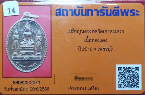 เหรียญสดุ้งกลับ.. ลพ.วัดเขาตะเครา.. เนื้อทองแดง.. ปี2516.. จ. เพชรบุรี.. มาพร้อมบัตรรับรอง |