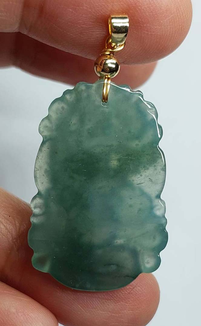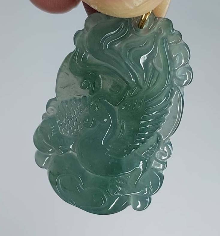 ***วัดใจ***จี้หยก แกะสลักรูปหงส์ สีโอเชี่ยนบลู เนื้อวุ้น สุง 3.2 ซม.