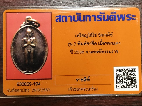 เหรียญไอ้ไข่ วัดเจดีย์ รุ่น3 ปี2538 เหรียญหายากและมากประสบการณ์