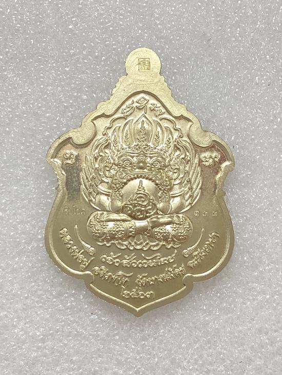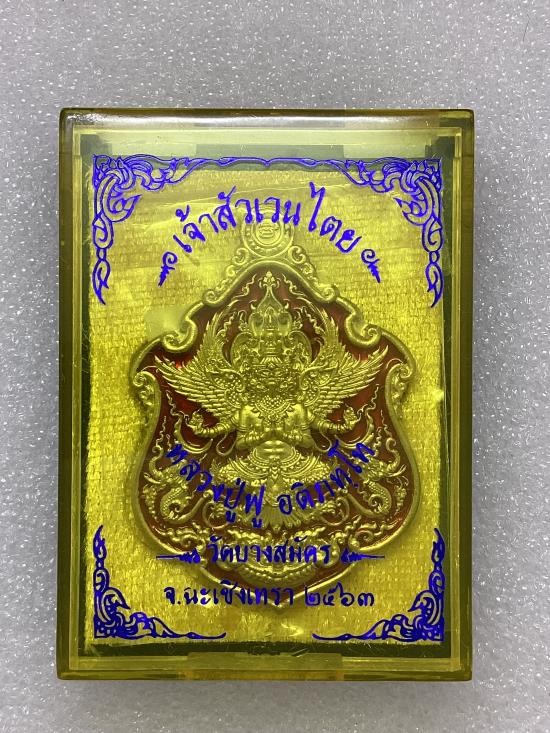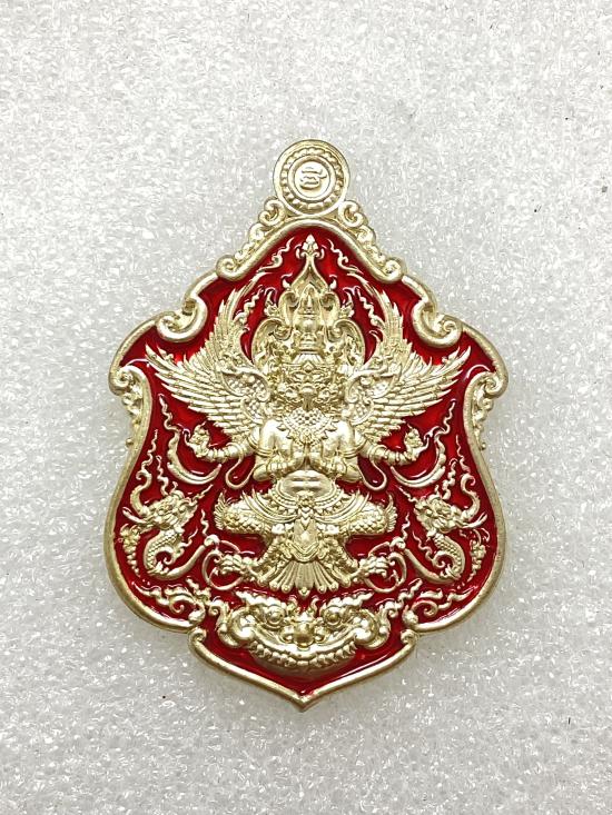 เหรียญพญาครุฑ รุ่น เจ้าสัวเวนไตย หลวงปู่ฟู อติภทฺโท วัดบางสมัคร จ.ฉะเชิงเทรา เนื้ออัลปาก้า ลงยาสีแดง กล่องเดิม |