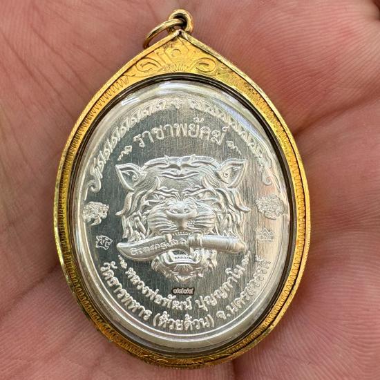 รายละเอียด เหรียญ รุ่น ราชาพยัคฆ์ (เสือ2) หลวงพ่อพัฒน์ วัดห้วยด้วน จ.นครสวรรค์ เนื้อเงิน ลงยาหลากสี หมายเลข 9494 เลี่ยมกรอบทองแท้
