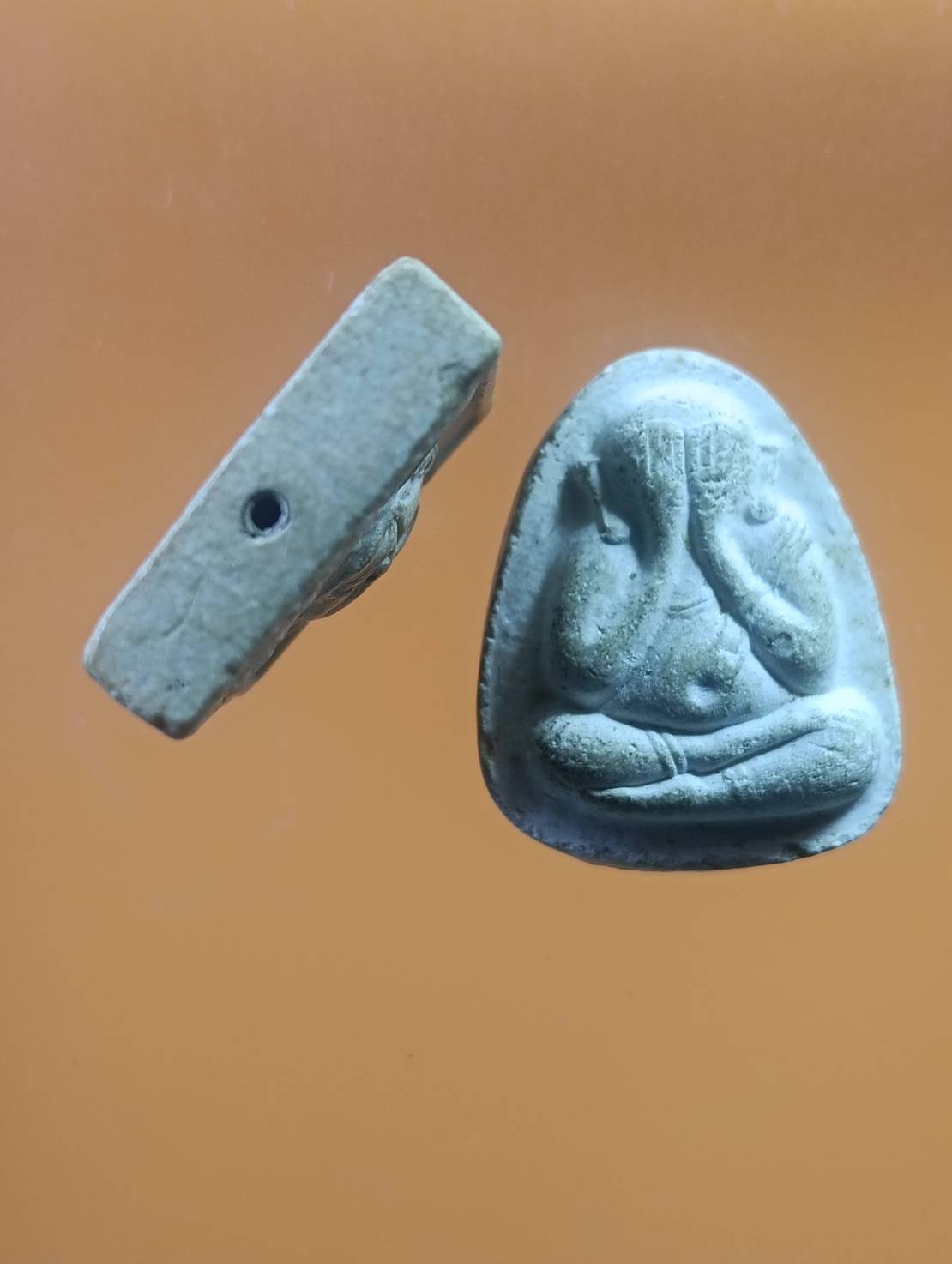 พระผงรูปเหมือน ฝังตะกรุดล่าง และพระปิดตา รุ่นเพชรรุ่งโรจน์ หลวงปู่โต๊ะ ปี 2535 |