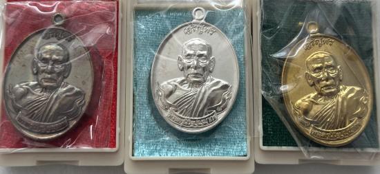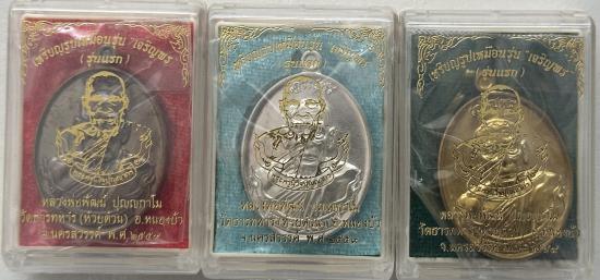 3เหรียญสวยๆ เหรีญเจริญพรรุ่นแรก หลวงพ่อพัฒน์ วัดห้วยด้วน ปี59 (กะไหล่เงินโบราณ+โลหะผสมชนวน+ทองเทวฤทธิ์)