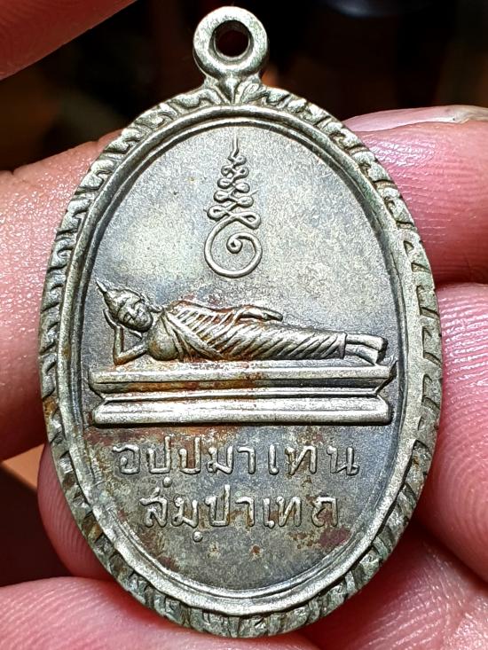 เหรียญพระแท่นดงรัง พระปางไสยาสย์ ที่ระลึกเสด็จพระราชดำเนินพระแท่นดงรัง ปี 2512 เนื้ออัลปาก้า |