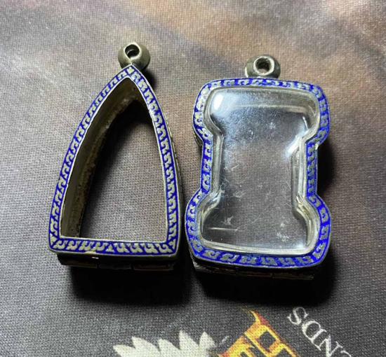 วัดใจของเหมามาขายถูกตามสภาพ กรอบเงินลงยา 2 ชิ้น ใส่พระรูปหล่อพระมเหศวร หรือใกล้เคียง(ไม่มีพาลสติก 1 กรอบ) |