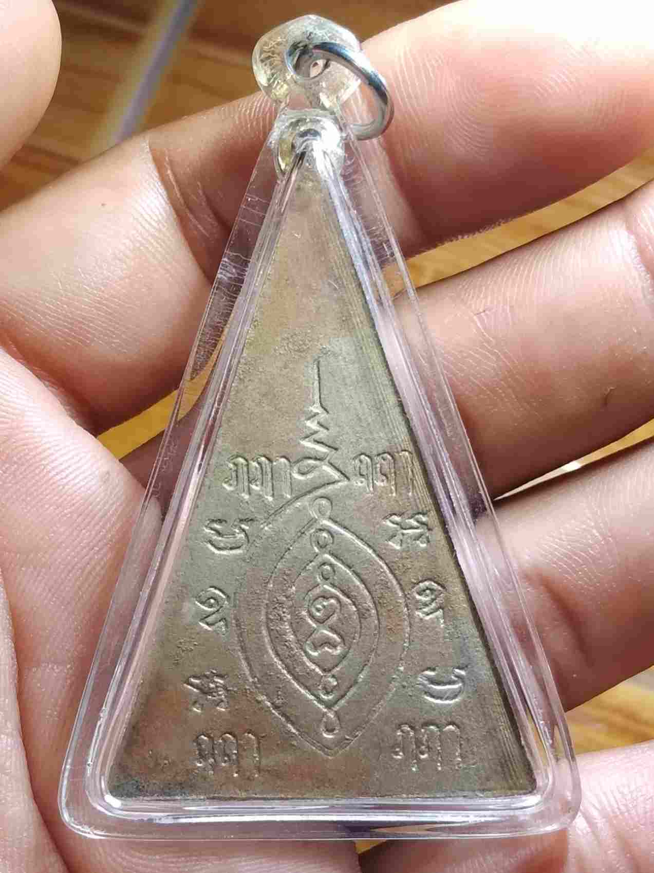 สามเหลี่ยมใหญ่เนื้ออัลปาก้า ปี 2539 (บล๊อคนิยมหน้ากลม) สภาพสวยผิวหิ้งเดิมๆ เลี่ยมพร้อมใช้