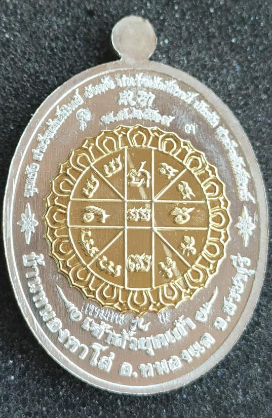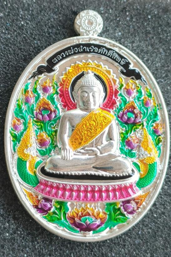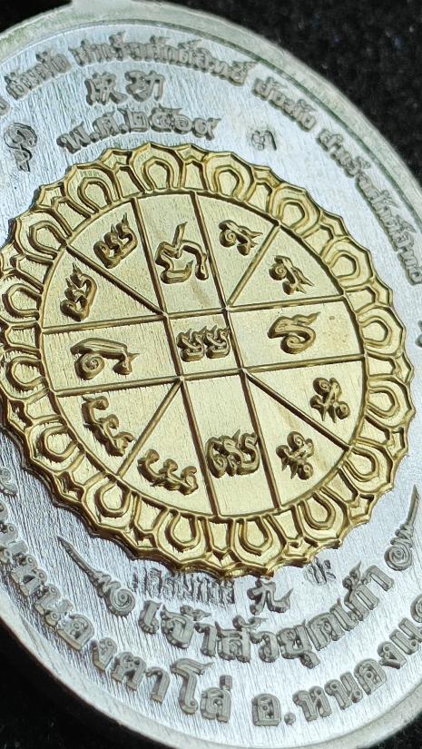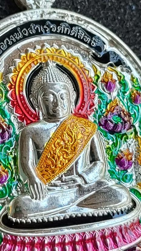 เหรียญพุทธศิลป์ หลวงพ่อสำเร็จศักดิ์สิทธิ์รุ่น"เจ้าสัวยุค๙" บ้านหนองตาโล่ จ.สระบุรี เนื้อชุบเงินเงา ลงยาองค์พระ-ลวดลายพิเศษ หลังหน้ากากยันต์ชุบทองคำ ตอก"กรรมการ" หมายเลข ๓ พร้อมกล่อง เลขเดี่ยวน่าเก็บสะสม (สร้าง๕๙องค์) ตอกกรรมการมีแค่10เหรียญ |