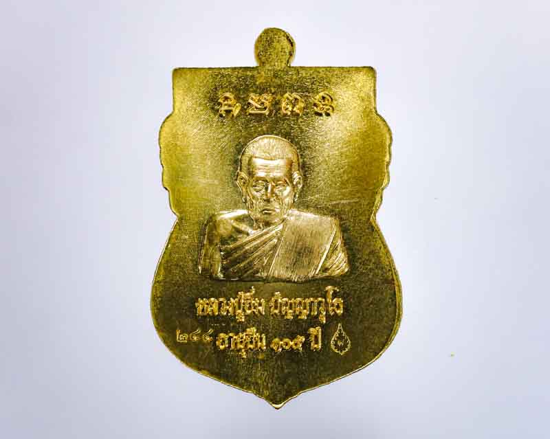 *เหรียญเสมาอายุยืน115ปี หลวงปู่อิ่ม วัดทุ่งนาใหม่ ด้านหน้า พ่อท่ายคล้าย วาจาสิทธิ์ หลังหลวงปู่อิ่ม เนื้อทองทิพย์ลงยา |