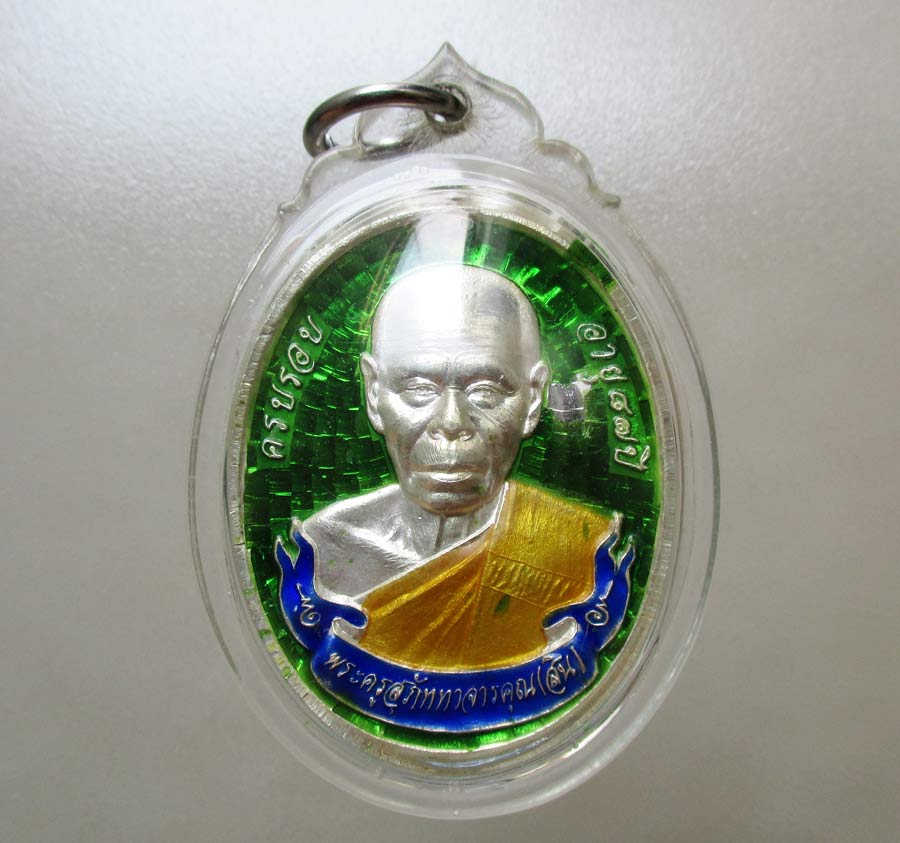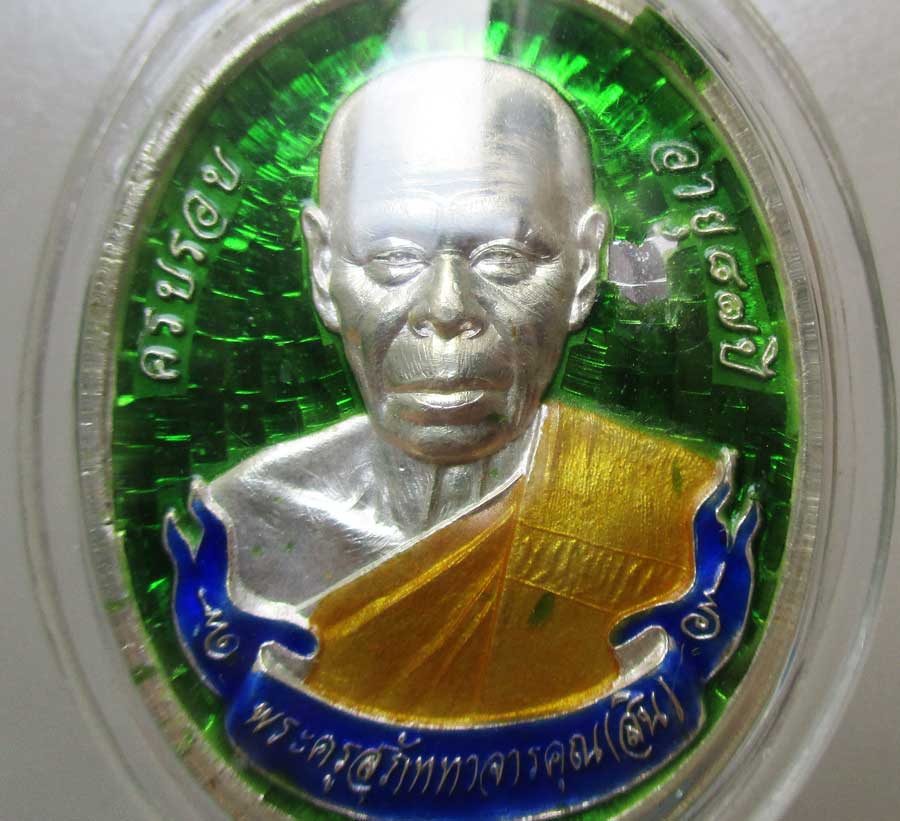 เหรียญโบว์ครึ่งองค์ ครบรอบอายุ 87 ปี ที่ระลึกในงานผูกพัทธสีมา หลวงพ่อสิน วัดระหารใหญ่ จ.ระยอง พ.ศ.2558 เนื้อเงินลงยา ตอกโค๊ต ตอกเลข เลี่ยมกันน้ำพร้อม !!