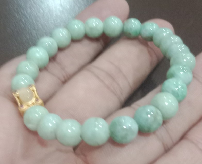 สร้อยข้อมือหยกพม่า/ขนาด8มิล/ร้อยยางยืดใส่สบาย/สินค้ามือ1/เส้นที่2