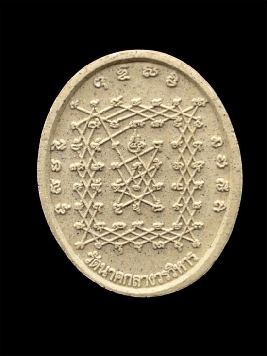 พระผงสมเด็จองค์ปฐมปางมหาจักรพรรดิ์อุ้มบาตร เป็นมหาลาภ จัดสร้างโดยวัดนาคกลางวรวิหาร ด้านหลังเป็นยันต์เกราะเพชร คุ้มตรองป้องกันภัย เนื้อผงสวย