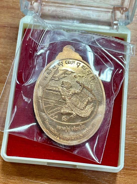 เหรียญ หลวงพ่อฟู วัดบางสมัคร ฉะเชิงเทรา รุ่น เจริญสุขหลังหนุมาน เนื้อทองแดง พร้อมกล่องเดิมเดิม