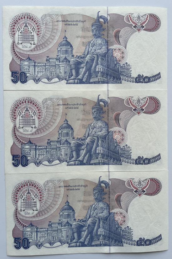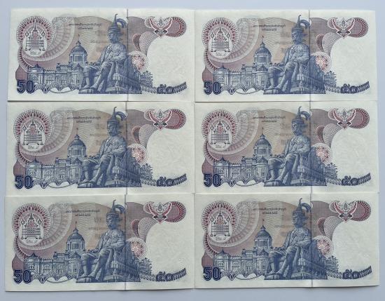 ธนบัตร 50 บาท รัชกาลที่ 9 แบบ 13 ลายน้ำสมเด็จย่า จำนวน 6 ใบ สภาพสวยตามรูป |