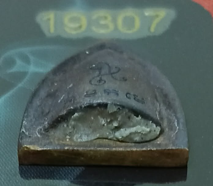 ด้านหลังของ ผาลไถเนื้อสัมฤทธิ์ ลงด้วยอักขระคาถา