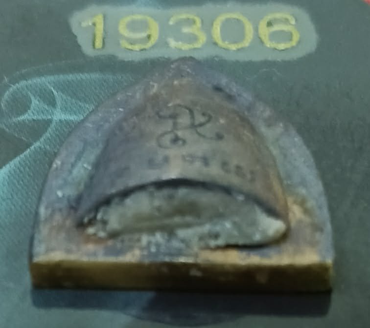 ด้านหลังของ ผาลไถเนื้อสัมฤทธิ์ ลงด้วยอักขระคาถา