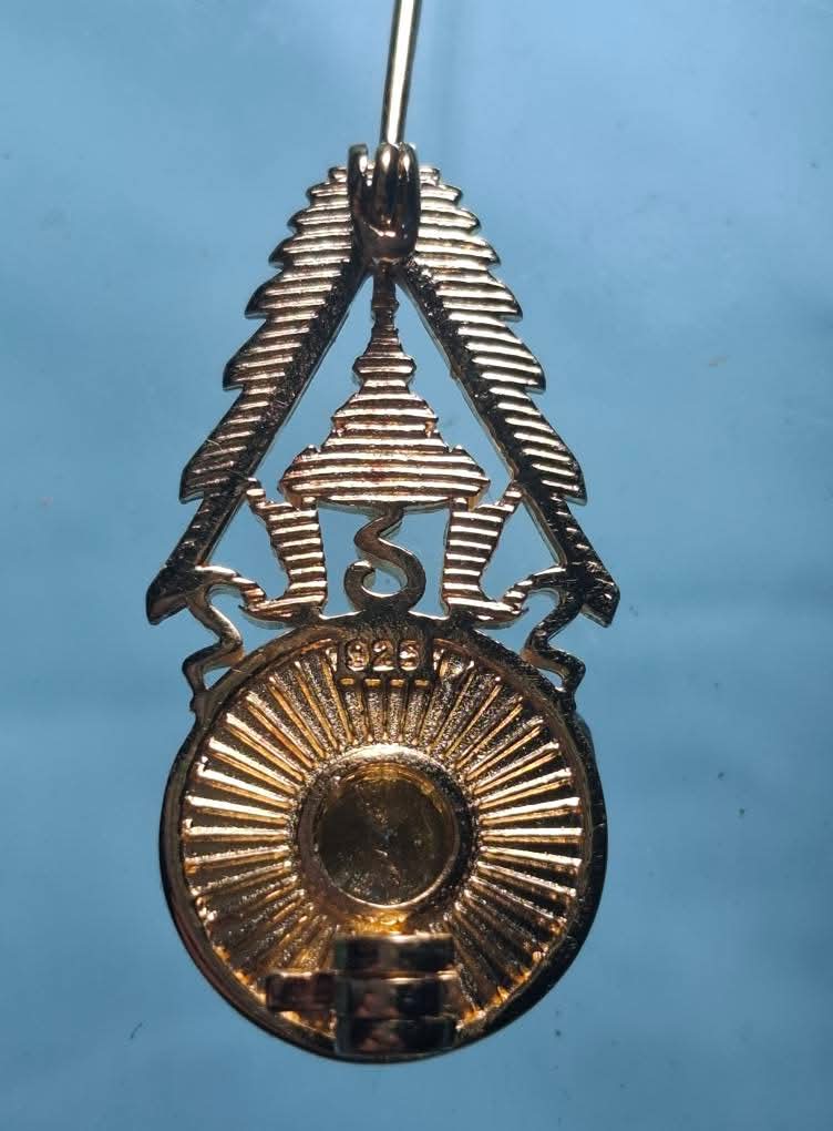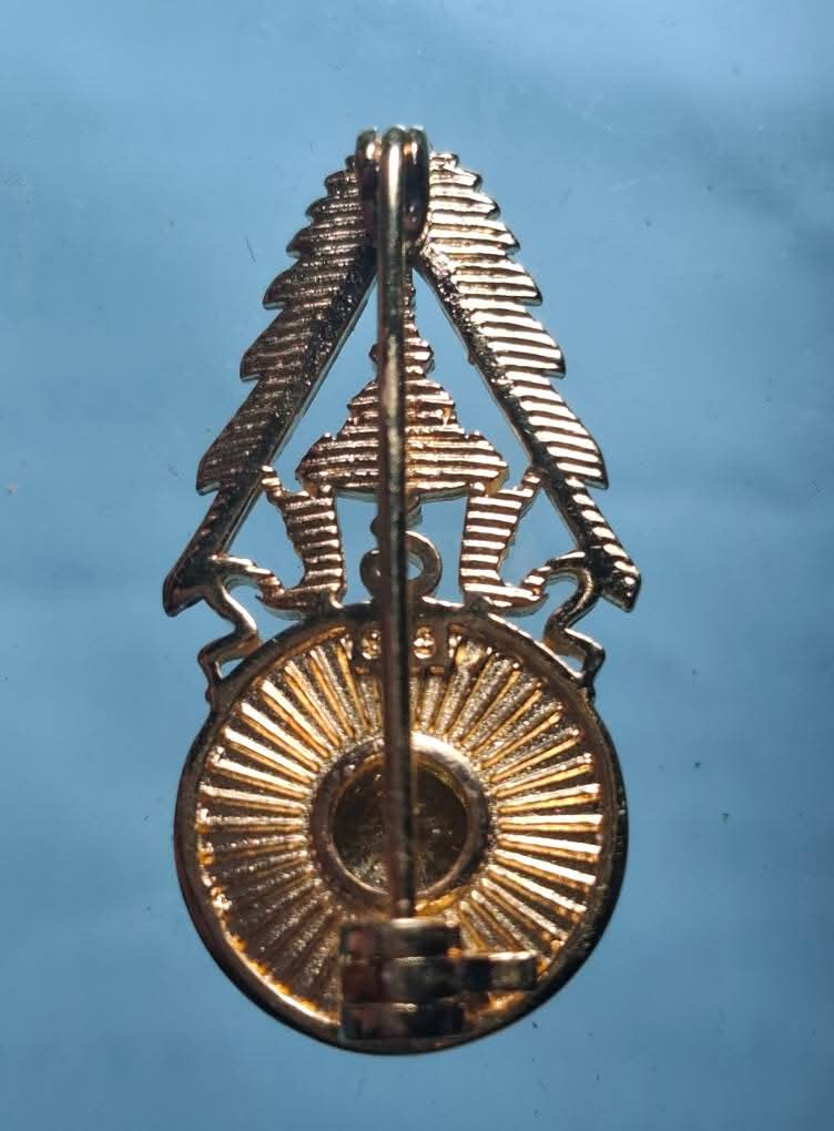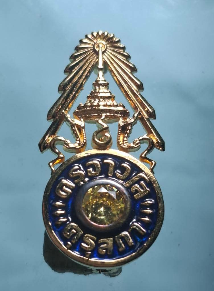 เข็มกลัด ครูอาวุโส คุรุสภา เนื้อเงิน ฝังพลอย ชุบทองแท้ ตอกโค๊ต 925 สวยงาม ในหลวง ร. 10 ทรงพระราชทาน ให้กับครูอาวุโส. |