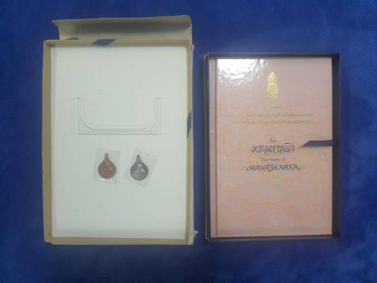 เหรียญพระมหาชนกพิมพ์เล็ก เป็นชุดทองคำ(แต่ไม่มีเหรียญทองคำ กับกล่องใส่เหรียญนะครับ) เป็นเหรียญเนื้อนาก และ เนื้อเงิน ปี2542 พร้อมกล่อง พร้อมบัตรรับรอง รับประกันตามกฏครับ |