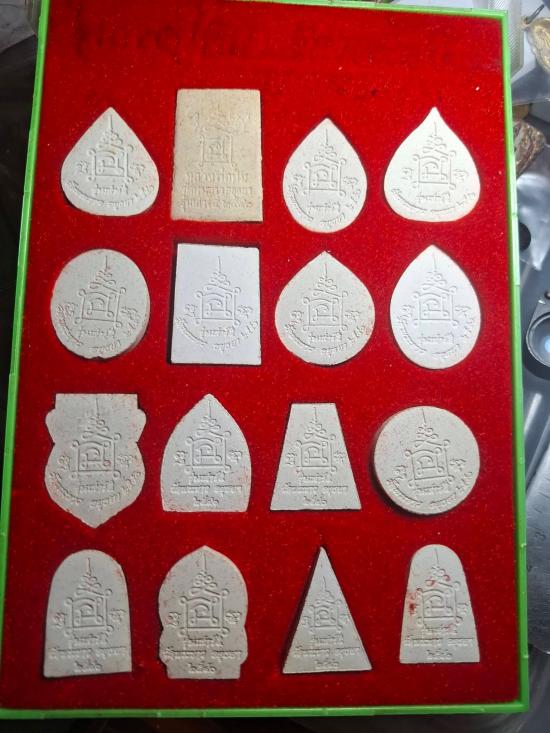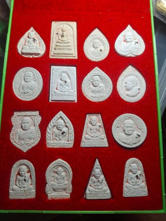 พระ 1 ชุดประกอบด้วยพระผงรูปเหมือนหลวงปู่ทิม ทั้งหมด 16 องค์ 16 พิมพ์ทุกองค์ฝังทับทิมแท้