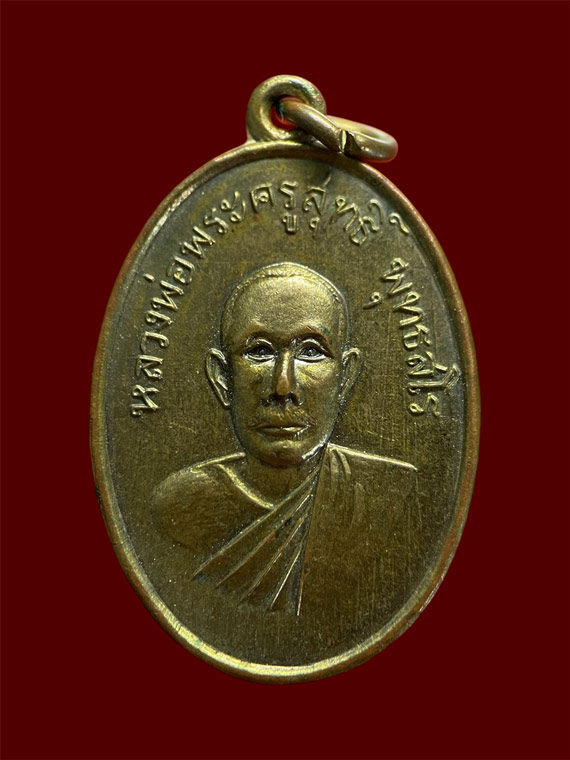 เหรียญหลวงพ่อพระครูสุทธิ พุทธสโร วัดใหม่สี่หมื่น อ.ดำเนินสะดวก จ.ราชบุรี เนื้อทองแดงกะไหล่ทอง ปี 2514 |