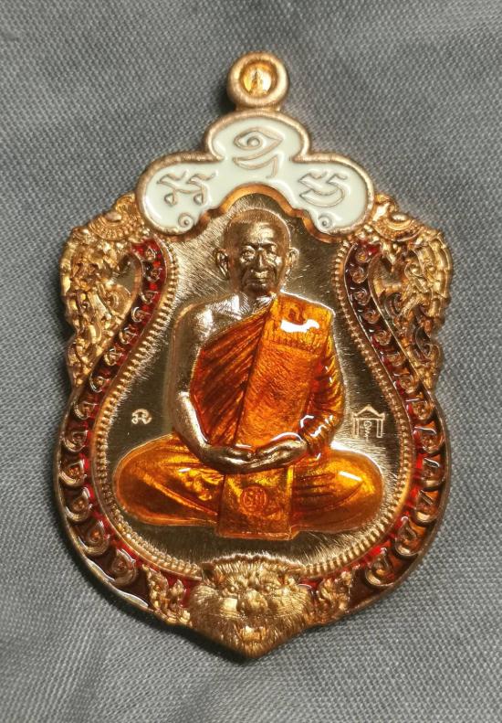 เหรียญเสมาใหญ่รุ่นแรกหลวงพ่อทองสุข(หลวงปู่ทองสุข)วัดหนองฆ้อจ.ระยองเนื้อทองแดงลงยา3สีสร้างน้อย209องค์(เสมาหัวสิงห์ใหญ่)ปี2560สร้างซุ้มประตู