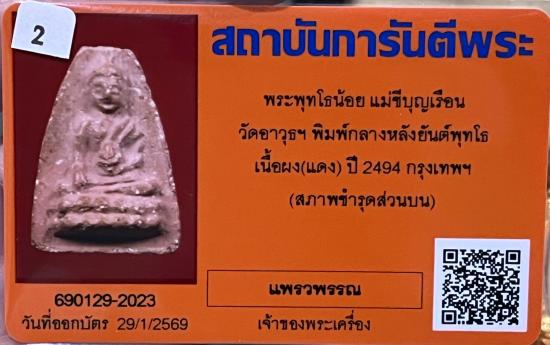 พระพุทโธน้อยพิมพ์กลางเนื้อผงสีแดง(ปูนเสก)นิยมปี2494วัดอาวุธ.คุณแม่บุญเรือน