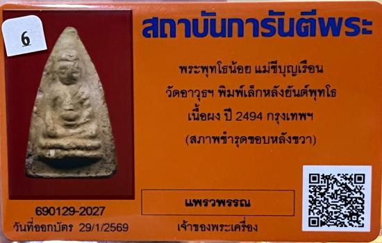 พระพุทโธพิมพ์เล็กหน้าตุ๊กตาไหล่จุดนิยมเนื้อผงน้ำมัน.รุ่นแรกปี2494วัดอาวุธ.พระสภาพสวยเดิมพิมพ์หน้าตุ๊กตาไหล่จุดบล็อคนิยมคะ.พร้อมบัตรตรวจสอบพระเรียบร้อยแล้วคะ.
