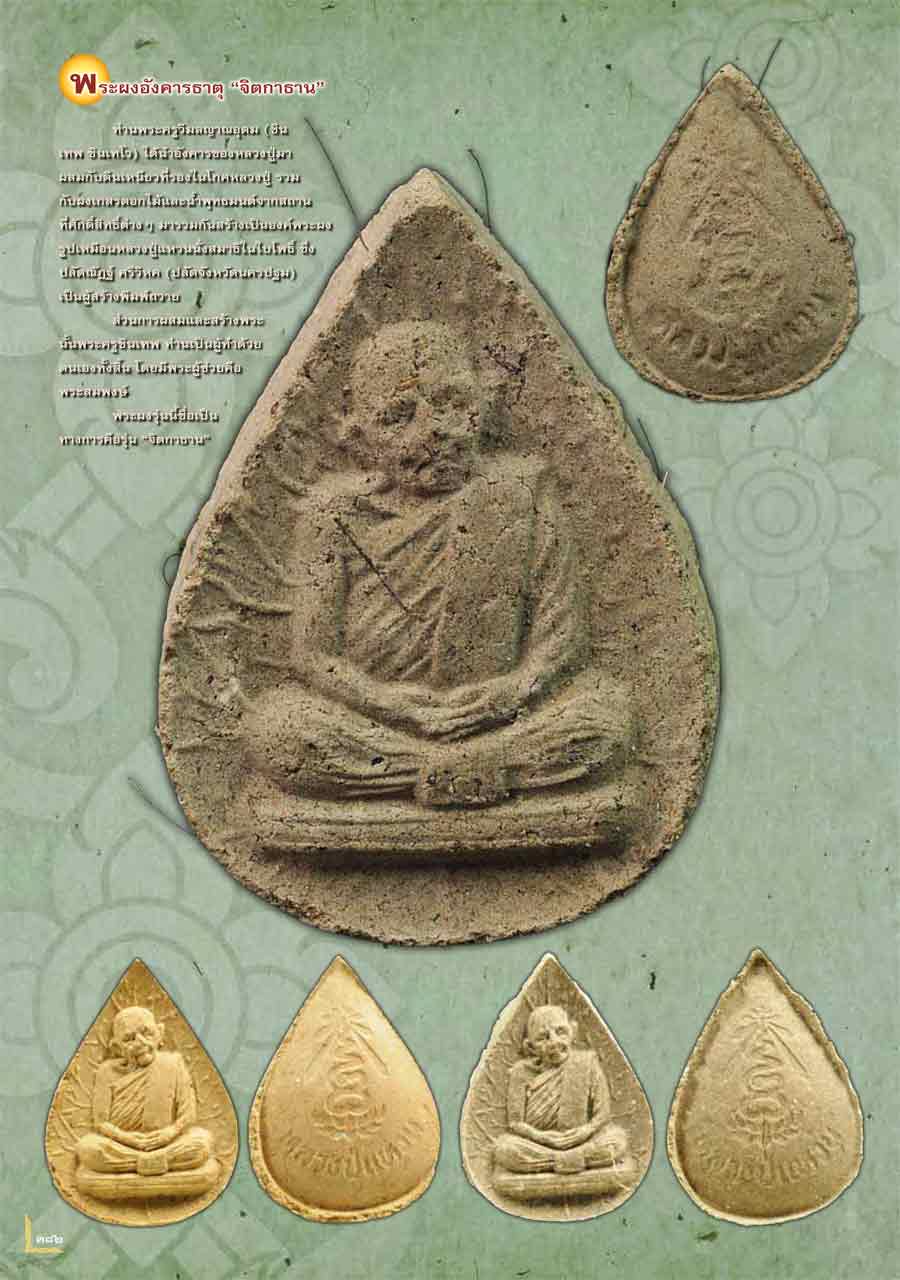 ส่วนการผสมและสร้างพระนั้นพระครูชินเทพเป็นผู้ทำด้วยตนเองทั้งสิ้น โดยมีพระผู้ช่วยคือพระสมพงษ์ พระเนื้อผงรุ่นนี้มีชื่อเป็นทางการคือรุ่น " จิตกาธาน " |