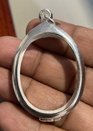 ตลับเงินปัดเงา ทรงรูปไข่ ขนาดขอบใน (กxสxหนา) (2.7 x 3.6 x0.6) Cm.หรือขนาดเหรียญใกล้เคียง |