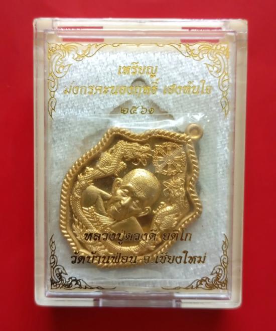 เหรียญมังกรคะนองฤทธิ์"เฮงทันใจ" ครูบาดวงดี วัดบ้านฟ่อน จ.เชียงใหม่ เนื้อทองฝาบาตร หมายเลข 433 สร้าง 800 องค์ สภาพสวยพร้อมกล่องเดิม เคาะแรกขั้นต่ำครับ
