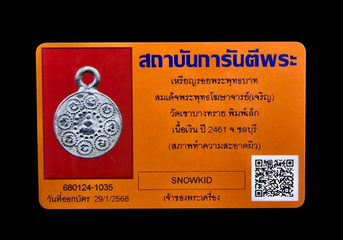 เหรียญพระพุทธบาท วัดเขาบางทราย เนื้อเงิน สมเด็จพุฒโฆษาจารย์(เจริญ)สร้างปี2461เนื้อเงินพิมพ์เล็ก