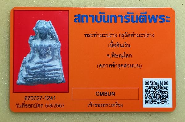 +++ พระท่ามะปรางค์ เนื้อชินเงิน กรุวัดท่ามะปรางค์ จ.พิษณุโลก + บัตร G-Pra +++