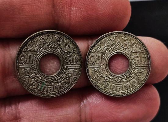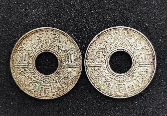 เหรียญเงิน 10 สตางค์ ลายกนก พ.ศ.2484 เนื้อเงิน จำนวน 2 เหรียญ