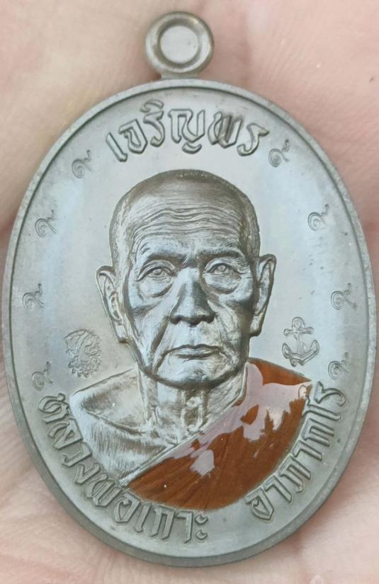 เหรียญ"เจริญพรบน"ที่ระลึกสร้างอุโบสถ วัดท่าสมอ หลวงพ่อเกาะ อาภากโร(ศิษย์หลวงพ่อกวย) เนื้อชนวน ลงยาจีวร ตอก๙รอบ โค๊ต"หนุมาน""สมอเรือ" เลข ๘๔๙ พร้อมกล่อง ตอก9รอบลงยาจีวรสร้างน้อย 100เหรียญ
