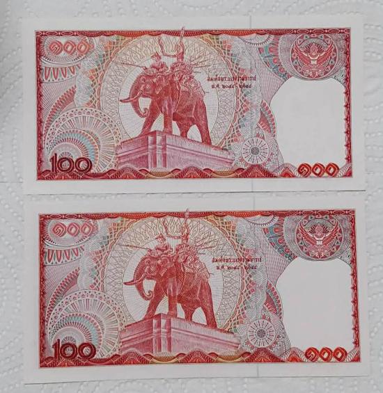 ธนบัตร 100 บาท รัชกาลที่ 9 แบบ 12 ช้างแดง เลข 6 หลัก จำนวน 2 ใบ สวยไม่ผ่านการใช้งาน ไม่พับ ไม่ยับ |