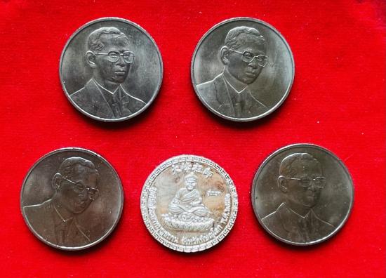 เหรียญกษาปณ์ ที่ระลึก ร 9 สี่เหรียญ และ ไต้ฮงกง เนื้อเงิน รุ่นแรก มูลนิธิประสาทฯ