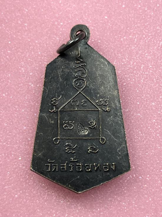 เหรียญอาร์มห้าเหลี่ยม หลวงพ่อเหลือ วัดสาวสะโงก เนื้อทองแดงรมดำ ปี2525 รุ่นเสาร์ห้า ตอกโค๊ต