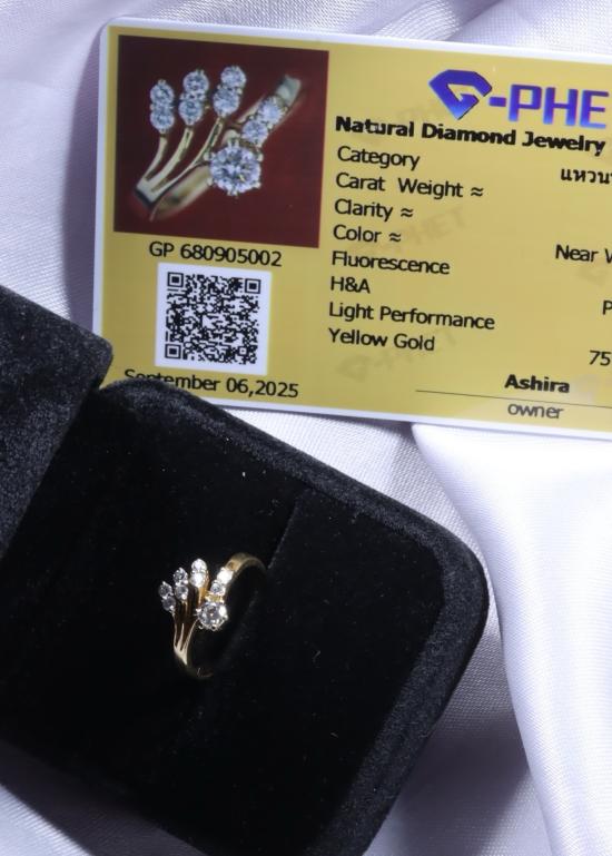 แหวนทองฝังเพชร ตัวเรือนทอง 75% น้ำหนัก 2.7 กรัม (เบอร์ 49)**พร้อมบัตรรับรอง G-Phet**