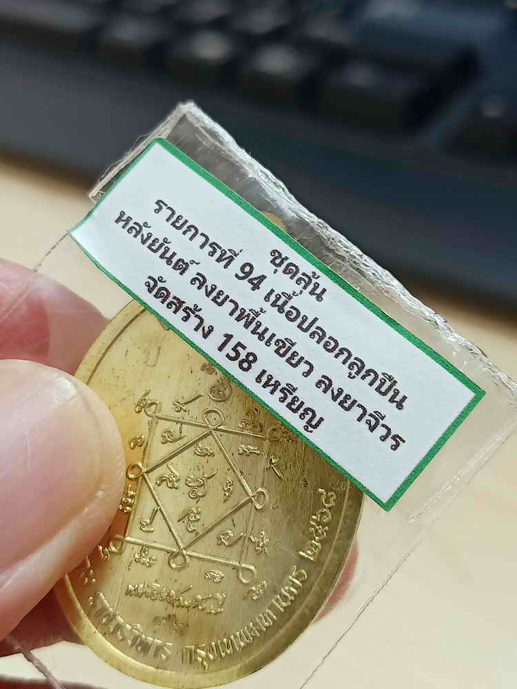 วัดใจ 100 เหรียญเจริญพรครึ่งองค์ รุ่นแรก หลวงพ่อสมบูรณ์ รตนญาโณ วัดหงส์รัตนารามราชวรวิหาร กรุงเทพ 2568 ปลอกลูกปืน ลงยาเขียว จีวร หมายเลข 96 กล่องเดิม |