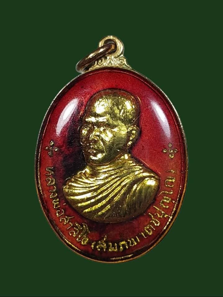 วัดใจ...80แดง เหรียญหลวงพ่อสมภพ(หลวงพ่อสาลีโข) หลังสิงห์ วัดสาลีโขฯ นนทบุรี ปี14 กะไหร่ทองลงยาแดง สภาพสวย
