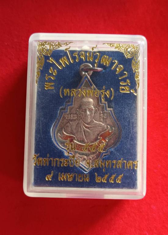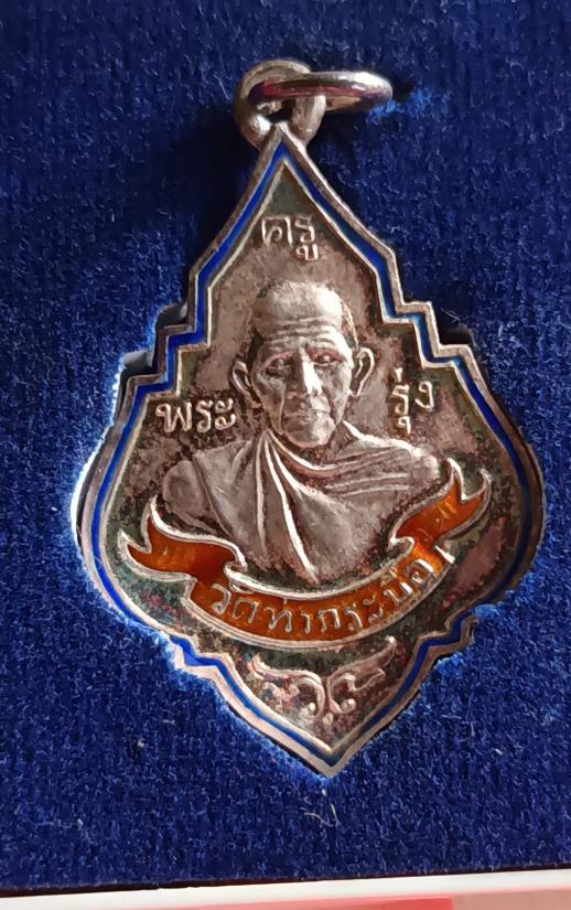 เหรียญหลวงพ่อรุ่ง วัดท่ากระบือ ปี 55 เนื้อเงินลงยา พร้อมกล่องเดิม