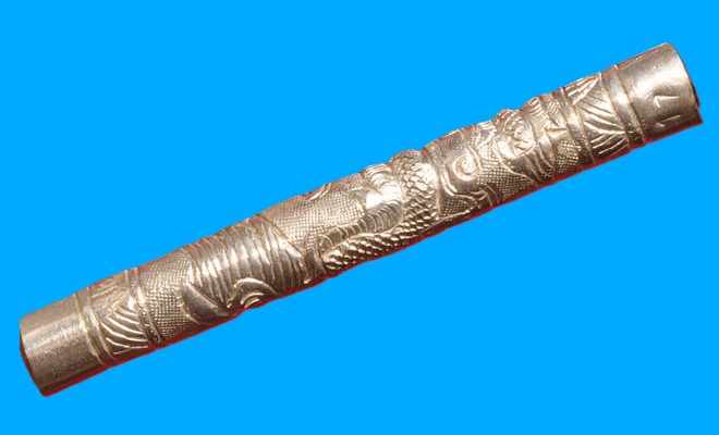 ตะกรุดเงิน แกะลายมังกร ลวดลายสวยงาม พ่อท่านพรหม วัดพลานุภาพ จ.ปัตตานี ๑ ใน ๑๙ ดอก หมายเลขโค๊ต ๑๗