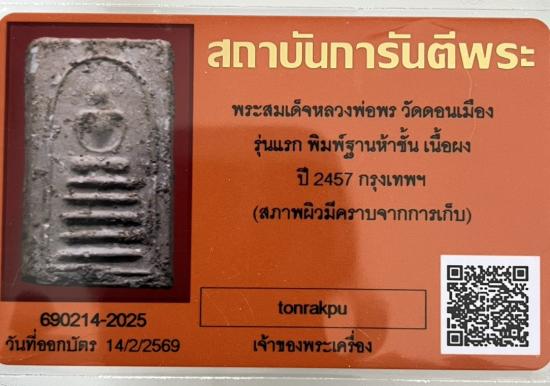 สมเด็จหลวงพ่อพร วัดดอนเมือง รุ่นแรก ปี 2457