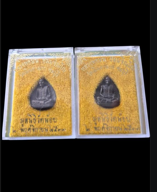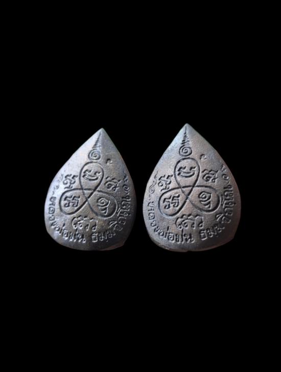 เคาะเดียว 2 องค์ครับ รูปเหมือนใบโพธิ์ เนื้อนวะโลหะ ออกโดยมูลนิธัวัดน้อย หลวงปู่ม่น ธัมมจิณโณ วัดเนินตามาก 1