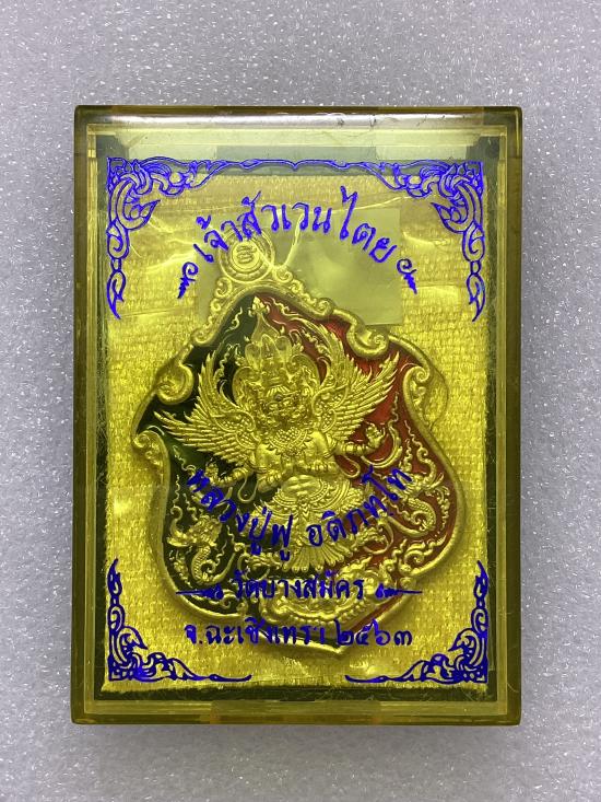 เคาะเดียวแดง 100 เหรียญพญาครุฑ รุ่น เจ้าสัวเวนไตย หลวงปู่ฟู อติภทฺโท วัดบางสมัคร จ.ฉะเชิงเทรา เนื้อทองทิพย์ ลงยาสี ดำ -แดง กล่องเดิม |