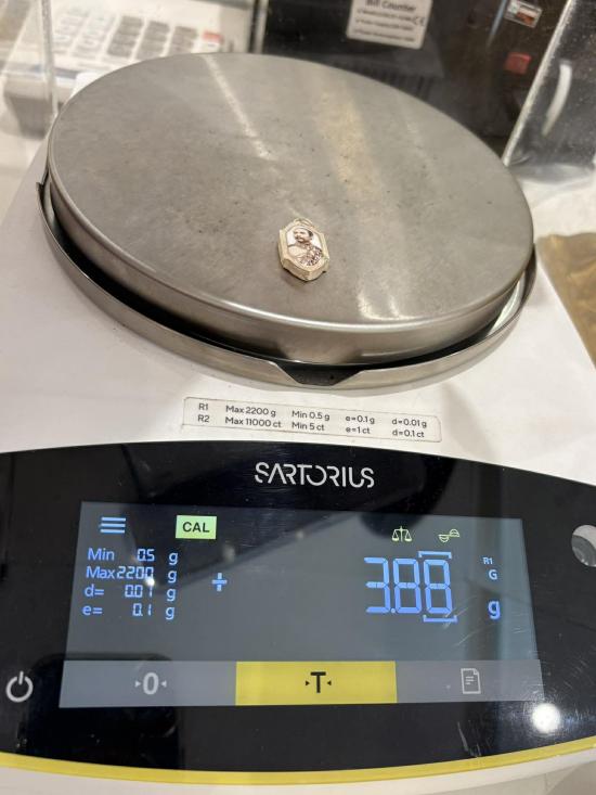 น้ำหนัก 3.88 กรัม กว้าง 1.5 ซม. สูง 3.2 ซม.(รวมห่วงแล้วค่ะ) |