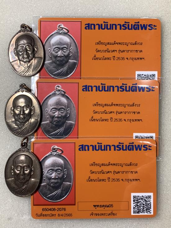 เหรียญสมเด็จญาณฯ รุ่นดารากาชาด ปี 2535 เนื้อนวะโลหะ พร้อมบัตรรับรอง เคาะเดียวเบาๆ 3 องค์