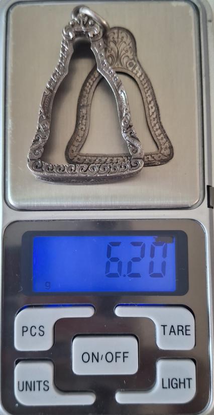 กรอบเงิน (จับขอบ) มือสอง ทรงระฆัง ความกว้าง 2.5 ซม ความสูง 3.7 ซม น้ำหนัก 6.20 กรัม เหมาะสำหรับใส่เหรียญทรงระฆัง สภาพน่ารัก