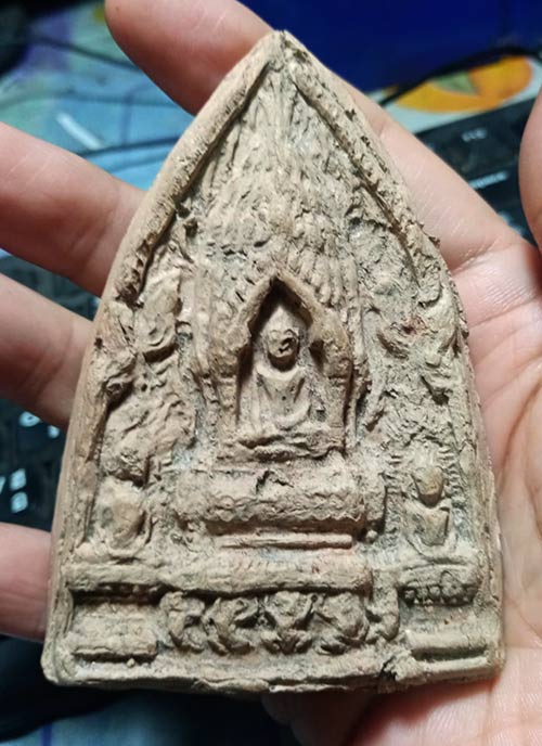 187.............พระตรีกายซุ้มปรางค์ เนื้อดิน พิมพ์ใหญ่ ไม่ทราบที่............ |