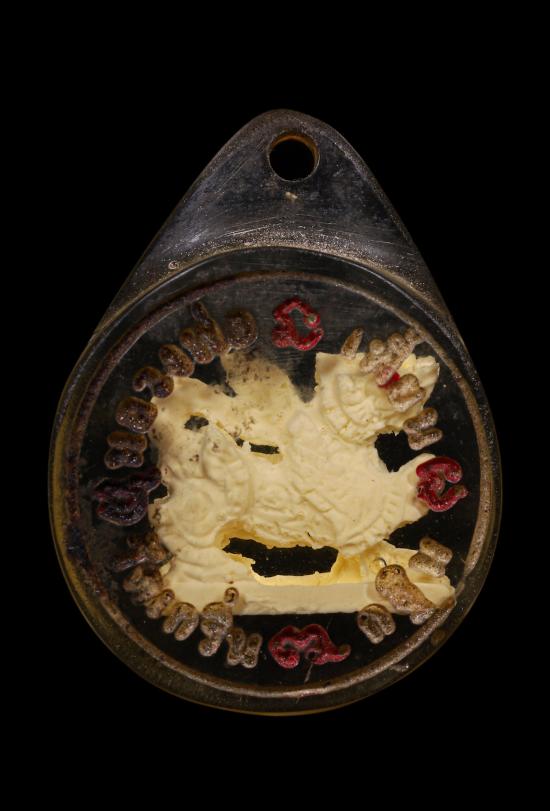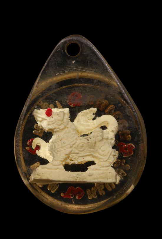 สิงห์งาแกะรุ่นแรก (เลี่ยมเดิมวัด) หลวงพ่อเพี้ยน วัดเกรินกฐิน จ.ลพบุรี ปีพ.ศ. 2548